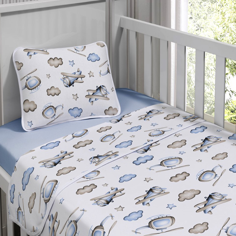 Jogo de Cama Tecebem Baby Malha 100% Algodão Estampado Kim 3 Peças Azul