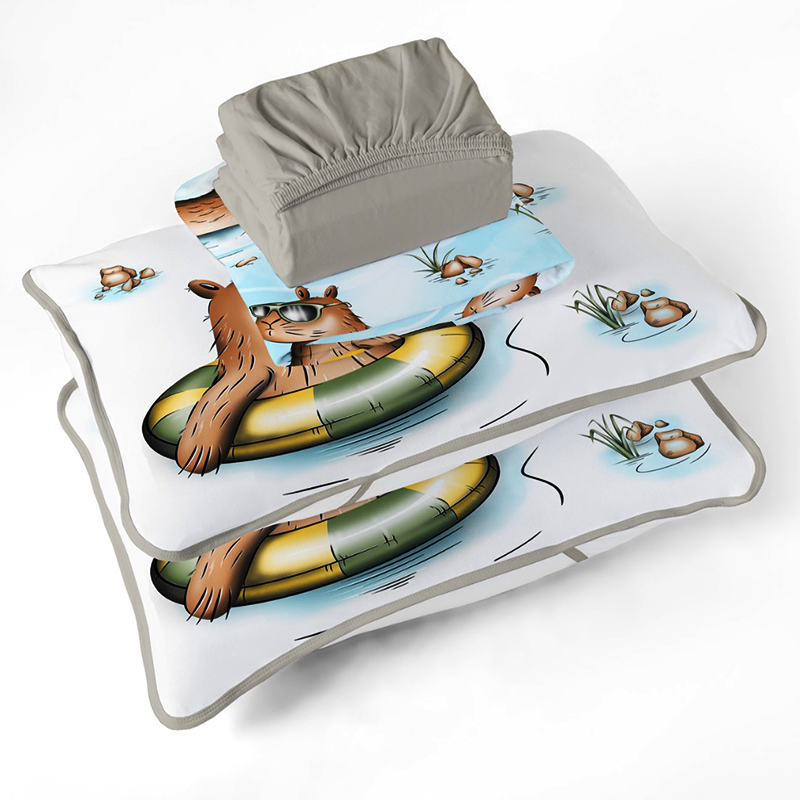 Jogo de Cama Tecebem Casal Malha 4 peças Estampado Bart/Trigo