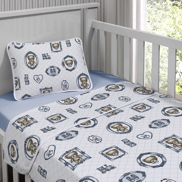 Jogo de Cama Tecebem Mini Cama(Montessoriana) Malha 100% Algodão Guilherme 3 Peças Azul