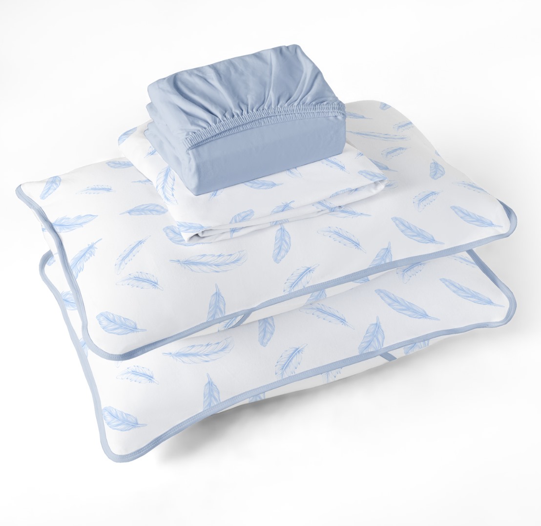 Jogo de Cama Tecebem Queen Malha 4 peças Estampado Elis/Azul