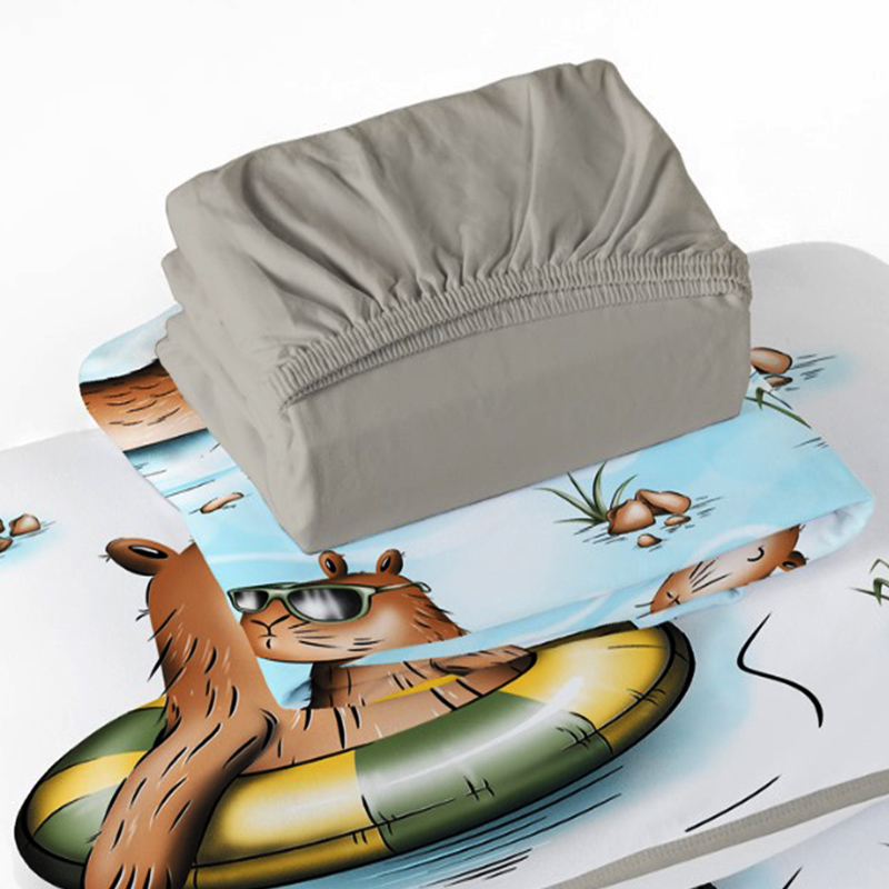 Jogo de Cama Tecebem Solteiro Malha 3 peças Estampado Bart/Trigo