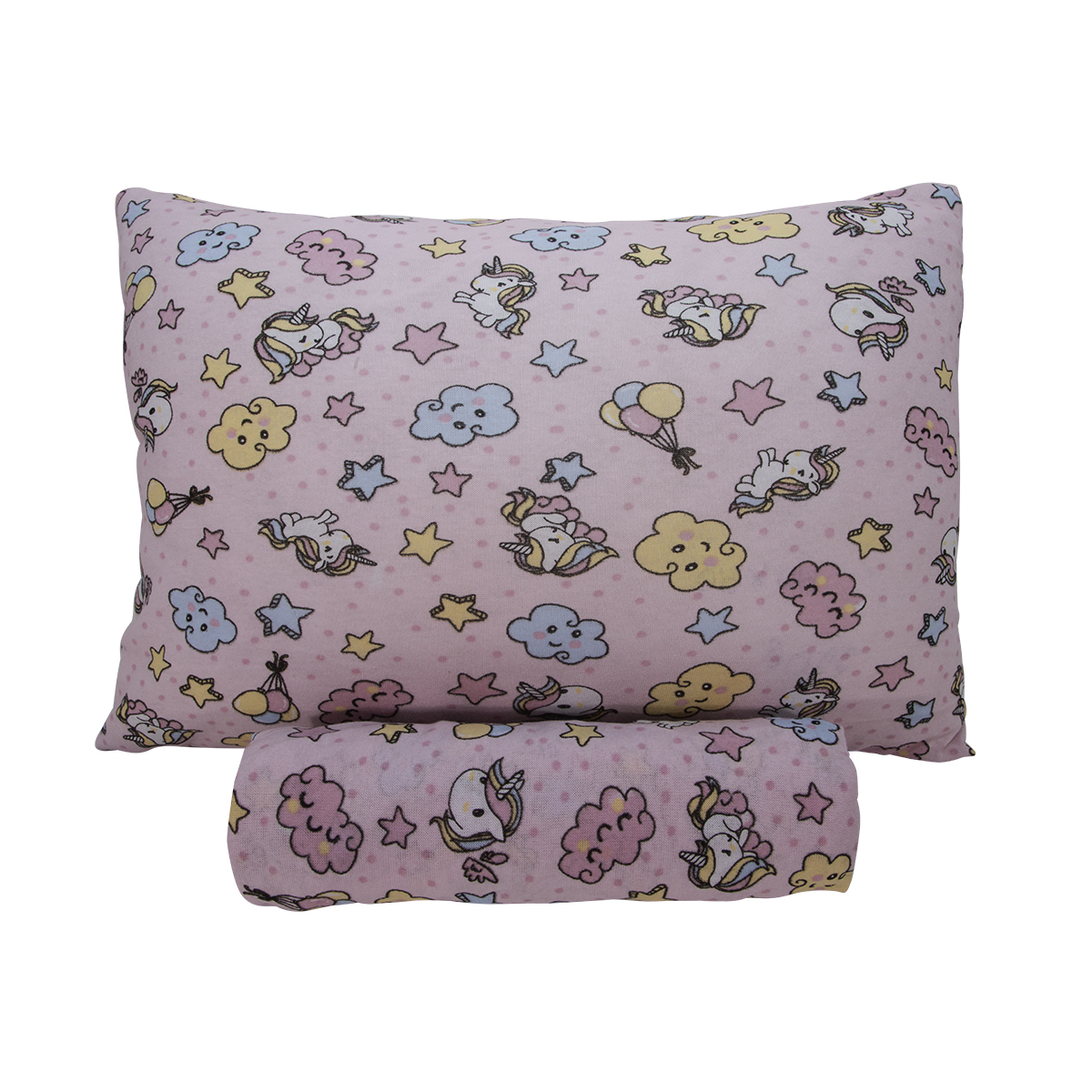 Jogo de Lençol KazzaVip Baby Malha 100% Algodão Berço Americano Estampado Nuvem e Unicórnio Com Elástico 2 Peças Rosa