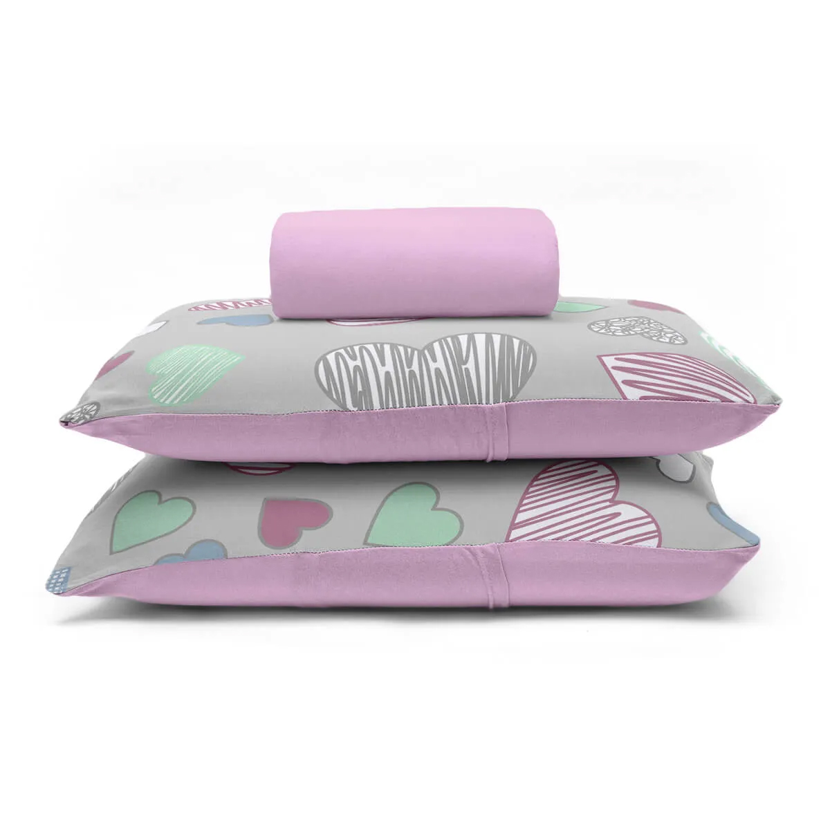 Jogo de Lençol KazzaVip Casal Malha 100% Algodão Basic Amores 3 Peças Rosa