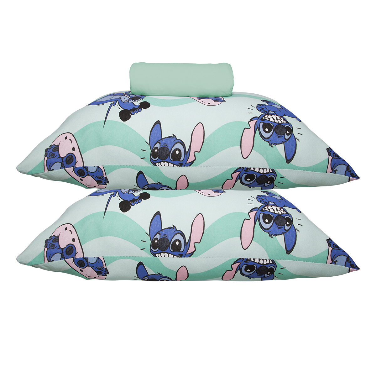 Jogo de Lençol KazzaVip Casal Malha 100% Algodão Play Disney Stitch Fit 3 Peças Verde