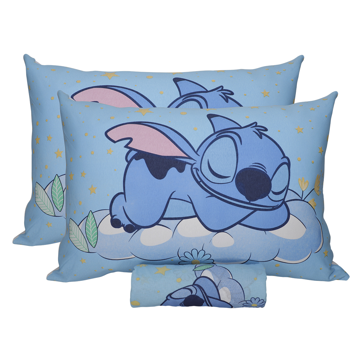 Jogo de Lençol KazzaVip Casal Malha Mista 70% Algodão e 30% Poliéster Joy Disney Stitch Dream 03 Peças Azul