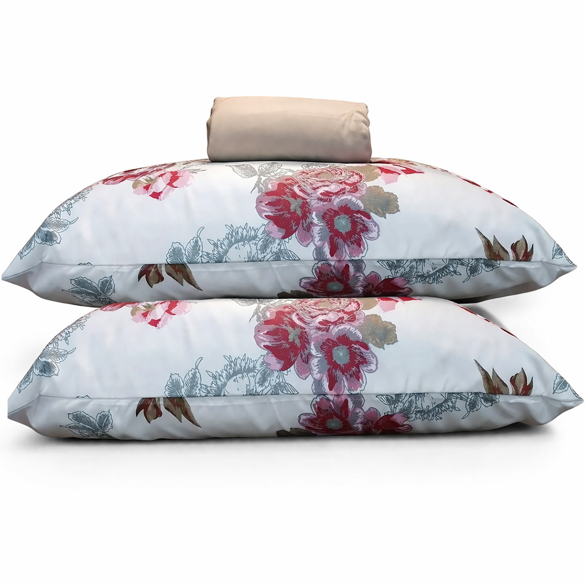 Jogo de Lençol KazzaVip Queen Microfibra 100% Poliéster Floral 3 Peças Rosa