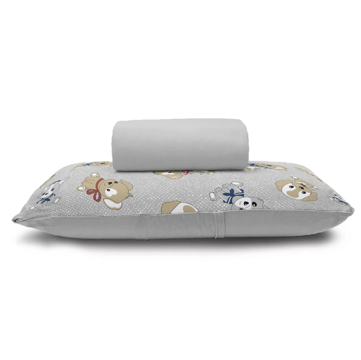 Jogo de Lençol KazzaVip Solteiro Malha 100% Algodão Basic Dogs 2 Peças Cinza