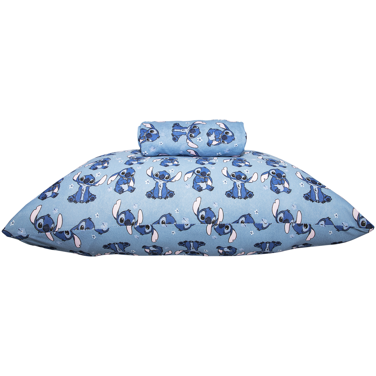 Jogo de Lençol KazzaVip Solteiro Malha Mista 70% Algodão e 30% Poliéster Estampado Disney Stitch Blue Kids 2 Peças Azul