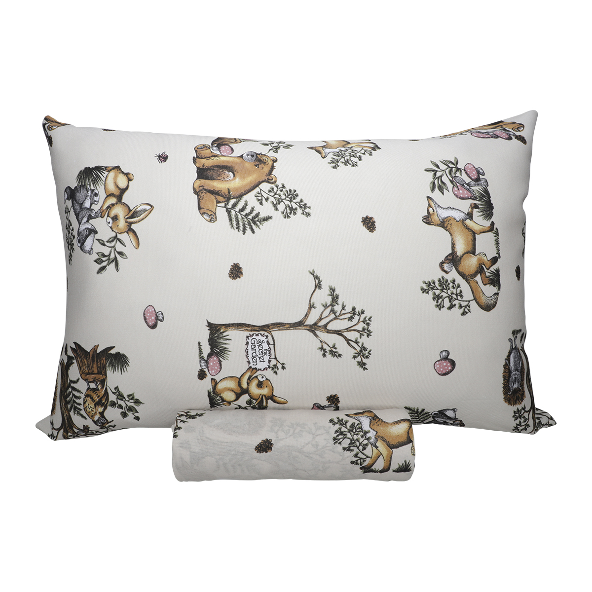 Jogo de Lençol Solteiro KazzaVip Malha Misto 70% Algodão e 30% Poliéster Estampado com Elástico 2 Peças Floresta Encantada Bege