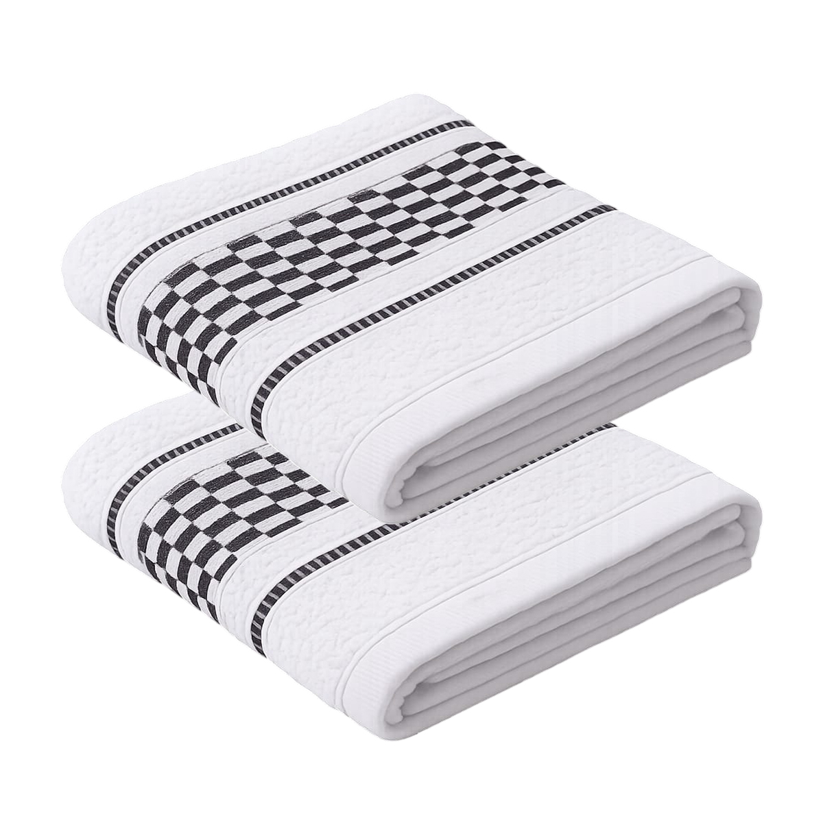 Kit 02 Pano - Copa KazzaVip Atoalhado 85% Algodão Com Barra Decorada Quadriculado Preto Jacquard 45cmx70cm Branco