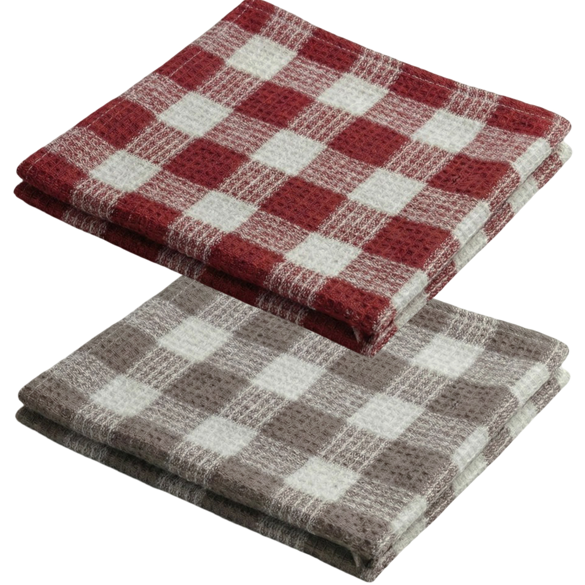 Kit 02 Pano De Prato Copa KazzaVip Maquinetado 95% Algodão 5% Poliester Xadrez 45cmx71cm Bege e Vermelho