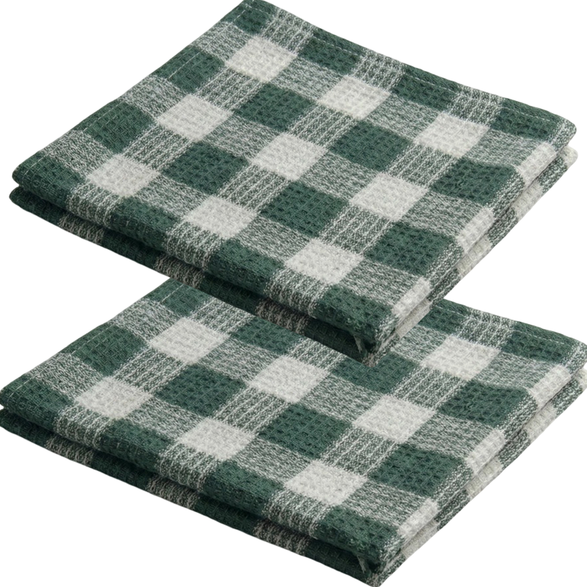 Kit 02 Pano De Prato Copa KazzaVip Maquinetado 95% Algodão 5% Poliester Xadrez 45cmx71cm Verde