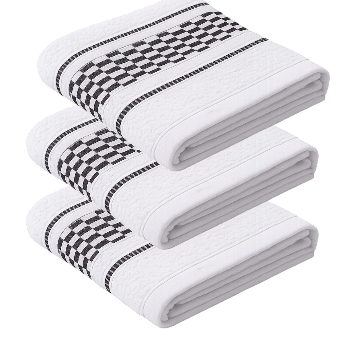 Kit 03 Pano - Copa KazzaVip Atoalhado 85% Algodão Com Barra Decorada Quadriculado Preto Jacquard 45cmx70cm Branco
