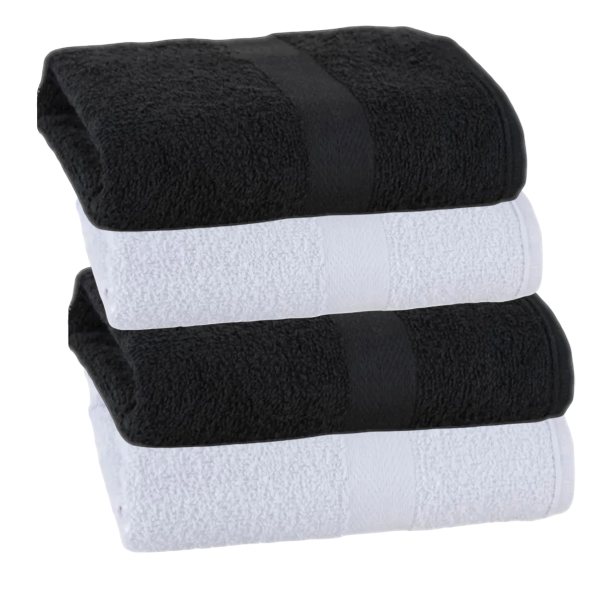 Kit 04 Unidades - Toalha de Rosto KazzaVip Felpuda 100% Algodão ( 02 Branca e 02 Preta ) Linha Salao 44cmx75cm Profissional