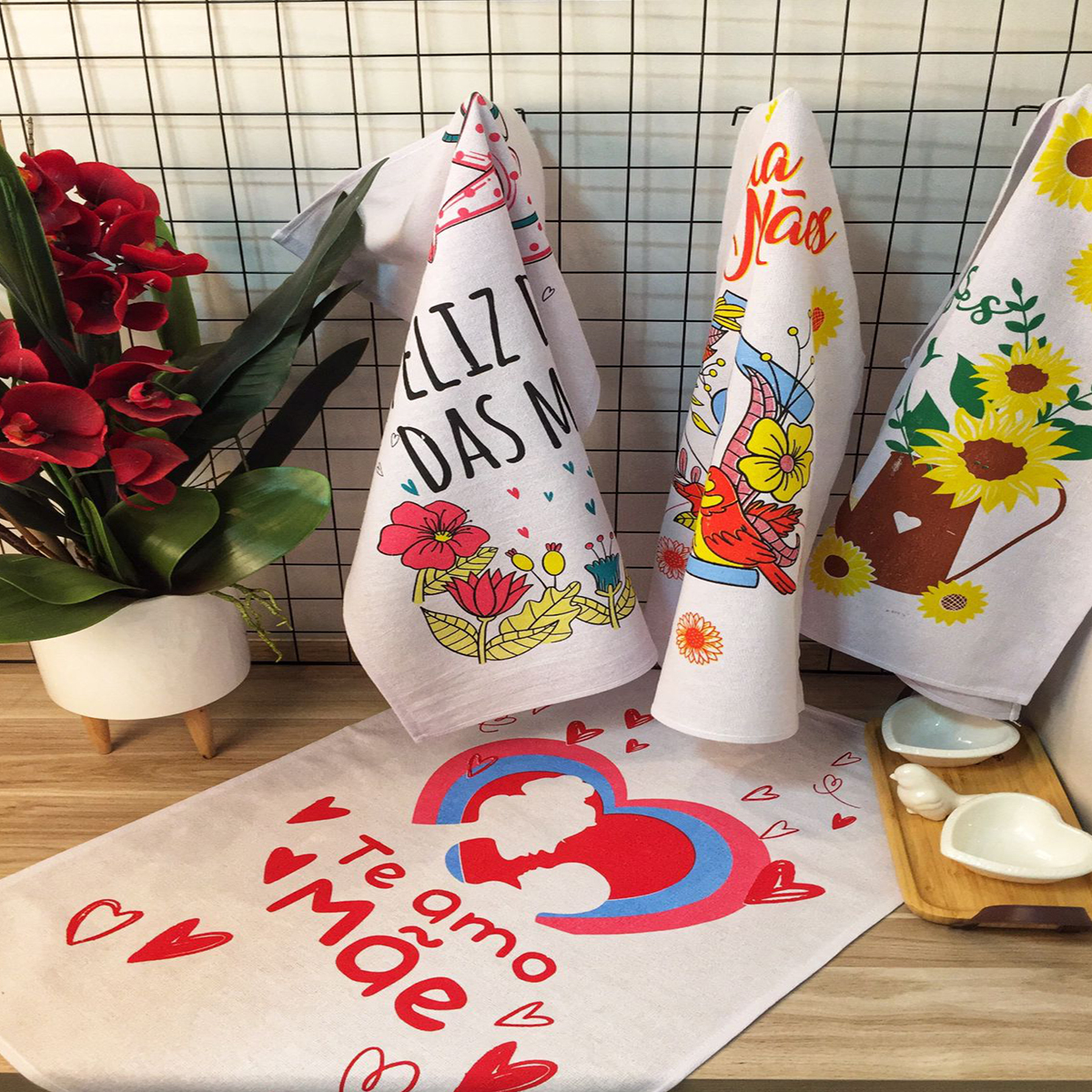 Kit 08 Pano De Prato Copa KazzaVip Sacaria 90% Algodão Mae 50cmx70cm Estampado Branco Off-White