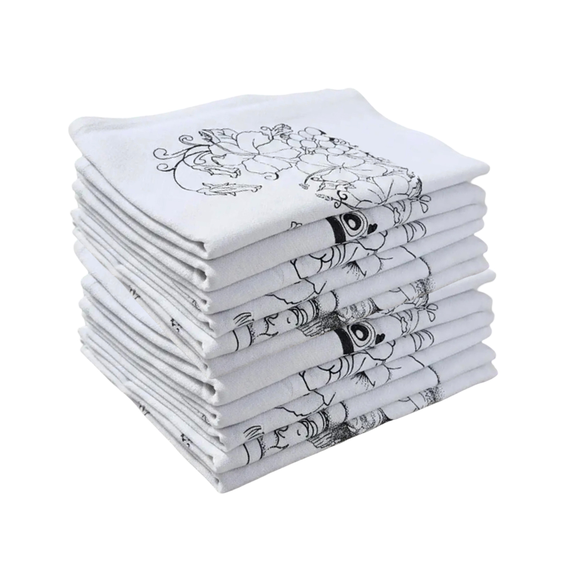 Kit 10 Pano De Prato Copa KazzaVip Sacaria 95% Algodão Estampa Contorno para Colorir 45cmx71cm Branco Off-White