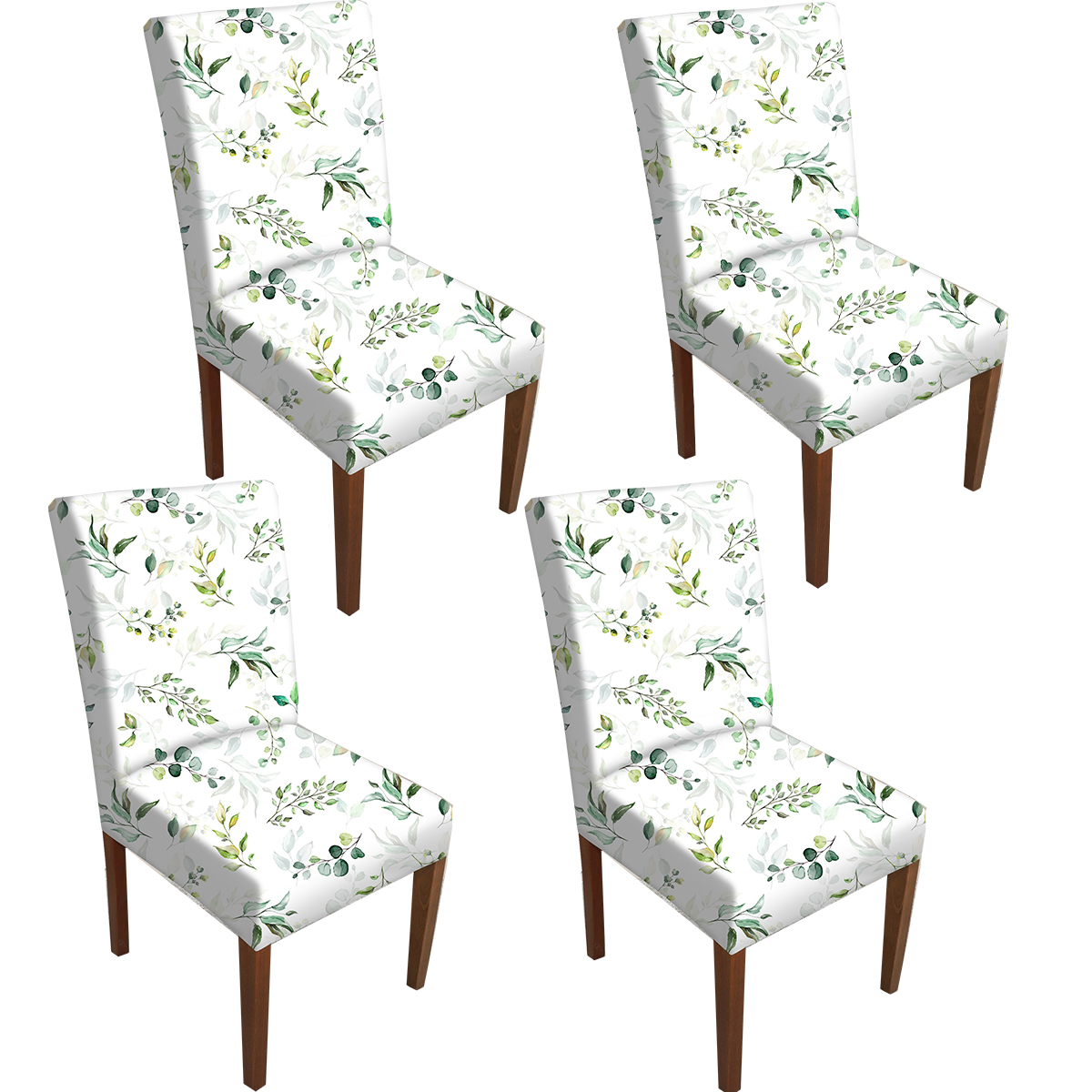 Kit 4 Capa para Cadeira Portallar Estampa Digital Malha 93% Poliéster e 07% Elastano Green Leaves Br