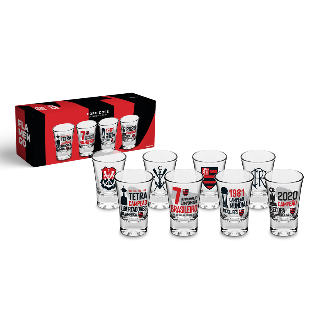 Kit 4 Copo Dose KazzaVip Vidro Oficial Licenciado Flamengo Football Club 60ml Cada Incolor