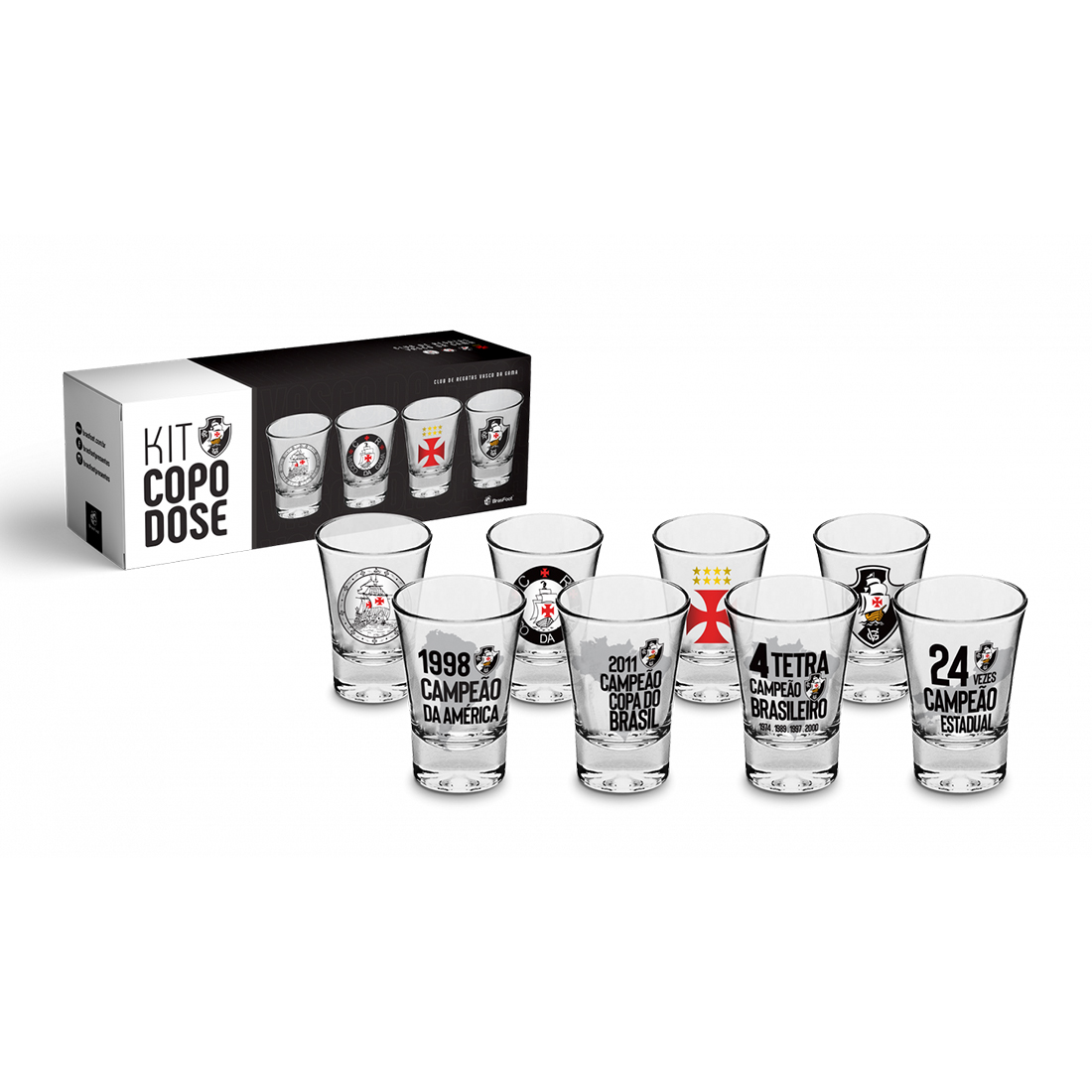 Kit 4 Copo Dose KazzaVip Vidro Oficial Licenciado Vasco Football Club 60ml Cada Incolor