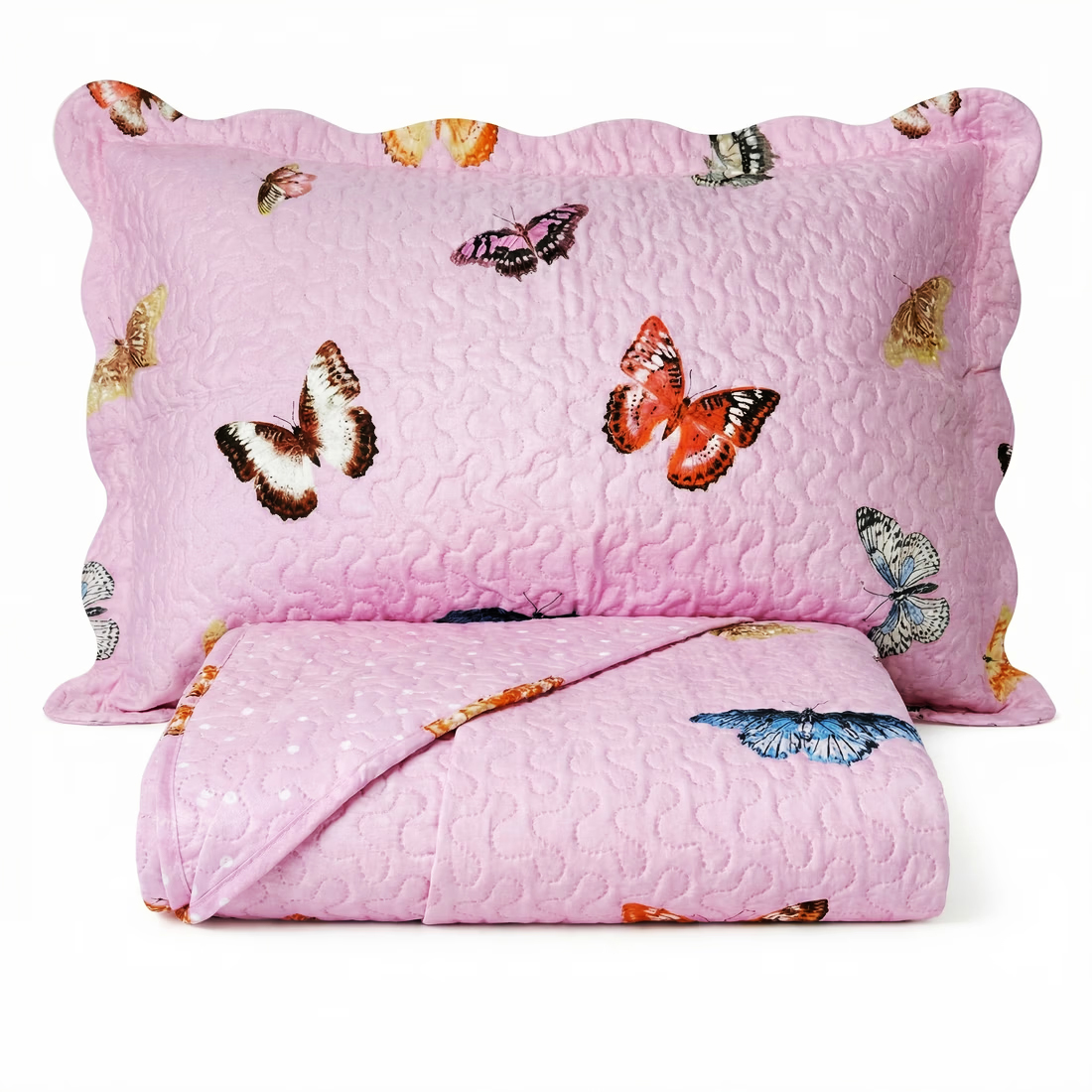 Kit Cobre Leito Bouti KazzaVip Solteiro Teen Microfibra 100% Poliéster Estampado Borboletas 2 peças Rosa