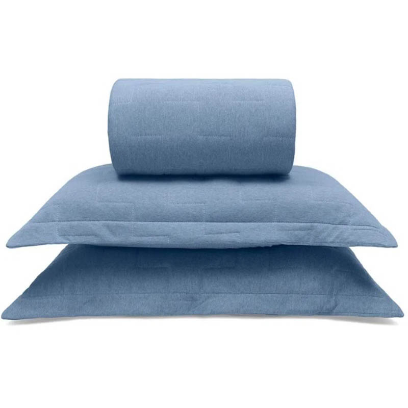 Kit Cobre Leito Buettner Queen Linha Basic Malha Mescla 3 Peças Azul