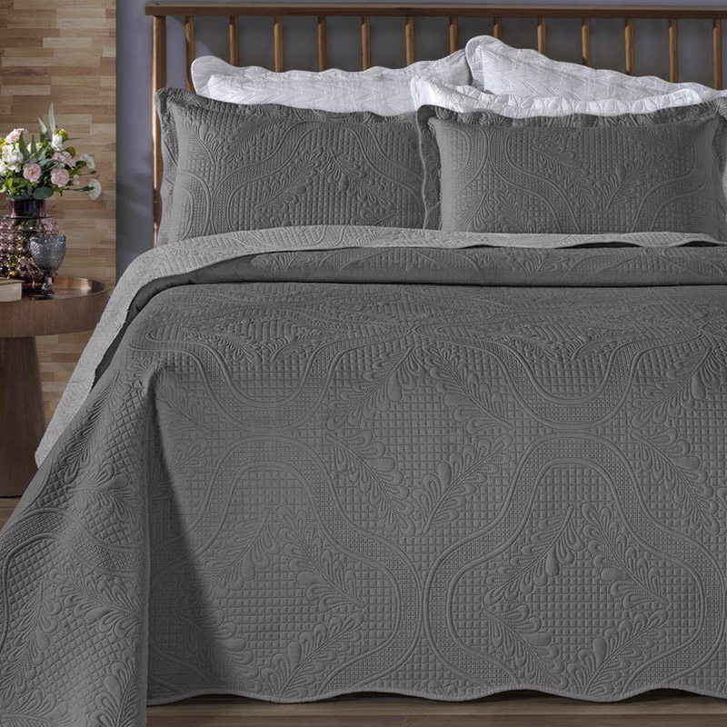 Kit Colcha Buettner Queen Matelassê Sem Costura Metrópole Lille 3 Peças Cinza