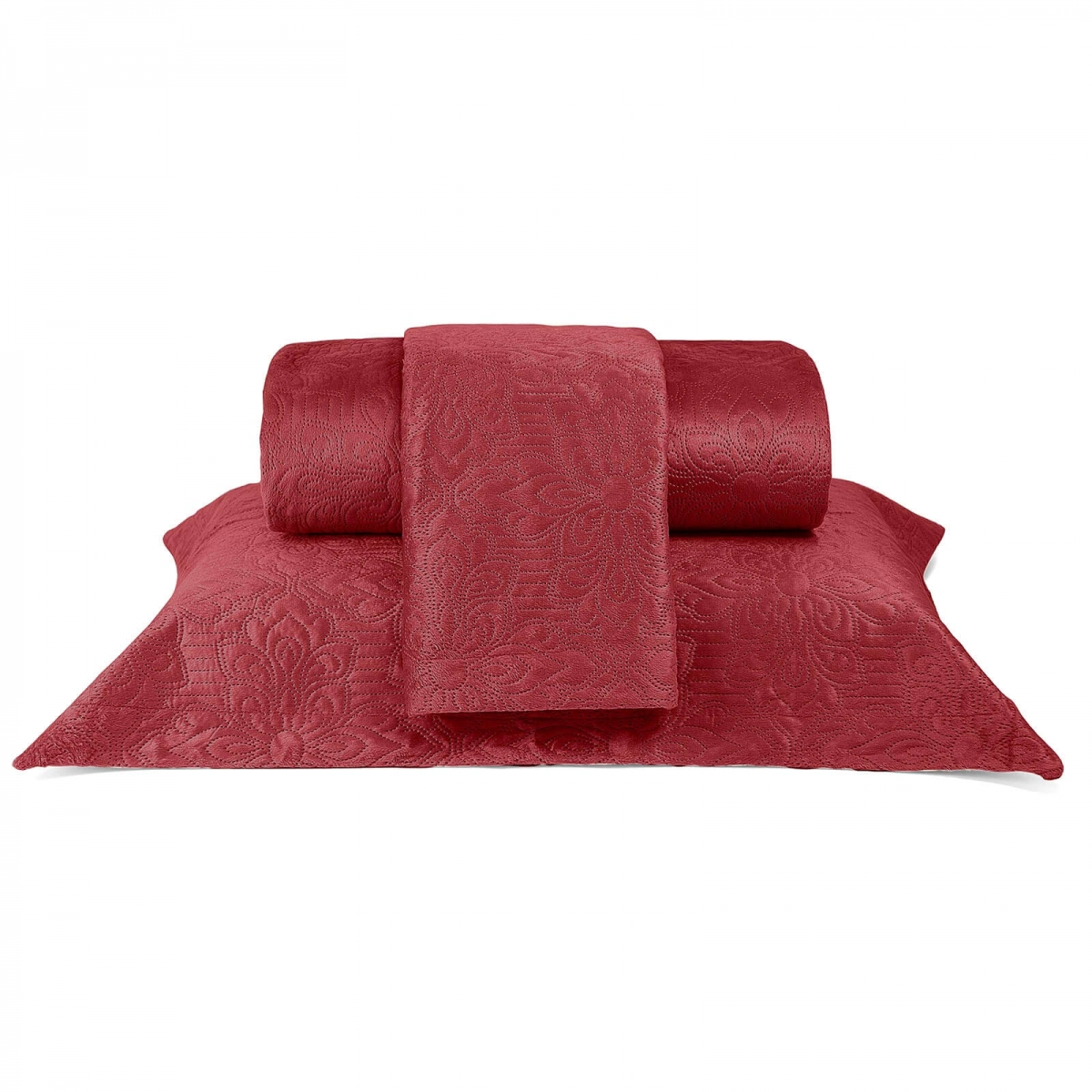 Kit Colcha Queen Micromink em Matelassê S/Costura C/Dois Porta Travesseiros Buettner Enos Vermelho