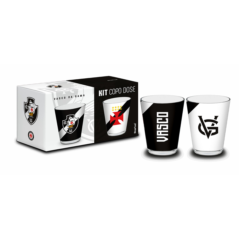 kit Copo Dose Iron BrasFoot Vidro 2 Unidades 360 Licenciado Vasco Da Gama 55ml Branco