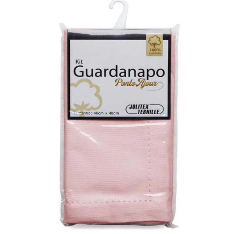Kit Guardanapo 2 Peças Jolitex Algodão Ponto Ajour 40cm x 40cm Rosa Cha