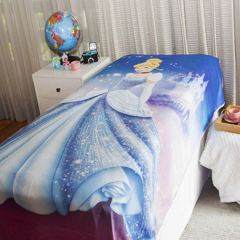 Manta Portallar Flanela Estampa Digital Cinderela 150mx220 Azul