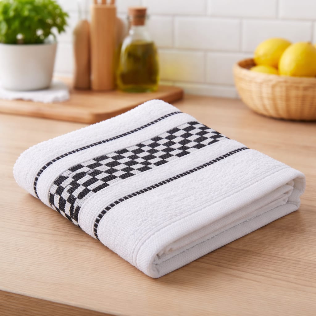 Pano Avulso Copa KazzaVip Atoalhado 85% Algodão Com Barra Decorada Quadriculado Preto Jacquard 45cmx70cm Branco