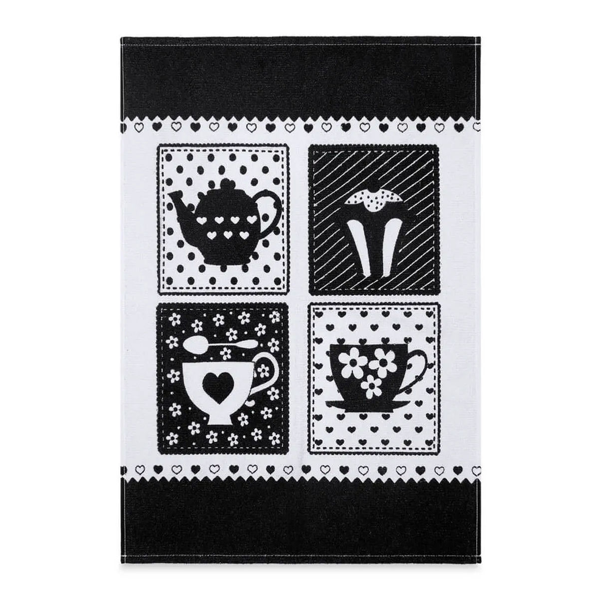 Pano de Copa Kazzavip Estampado Cooking Black 50cmx65cm Branco