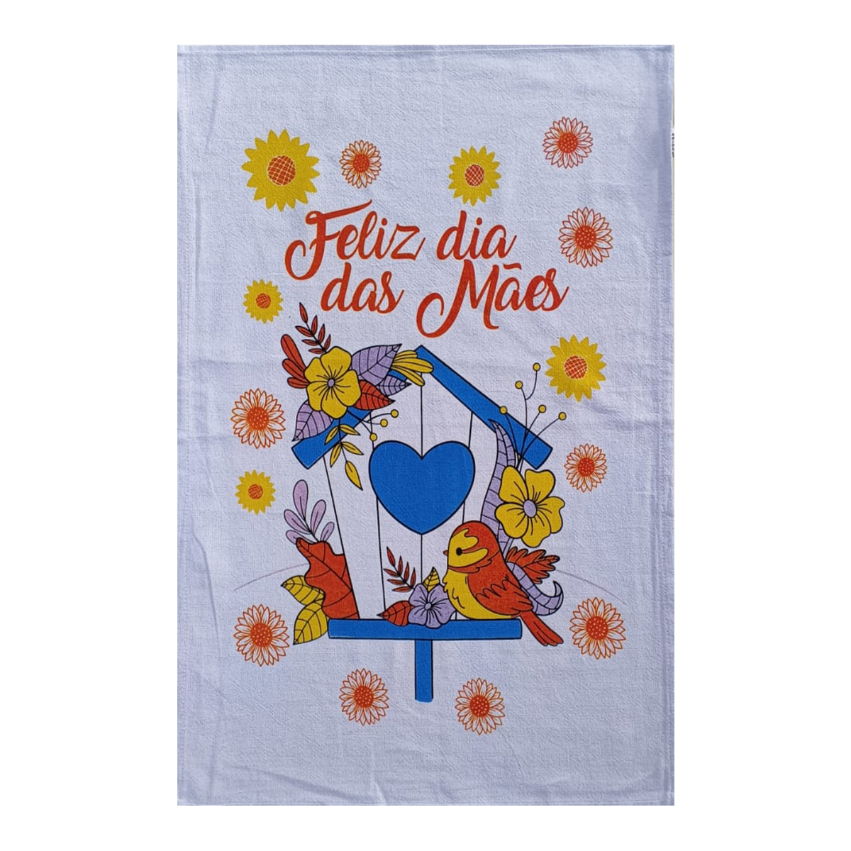 Pano De Prato Copa KazzaVip Sacaria 95% Algodão Mae 50cmx70cm Estampado Feliz dia das Maes Branco