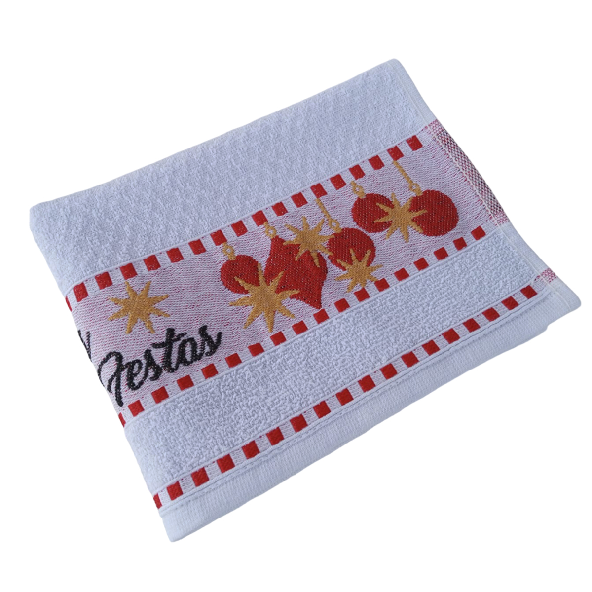 Pano De Prato KazzaVip Felpudo Jacquard Barra Bordada Natal Boas Festas 50cmx70cm Branco