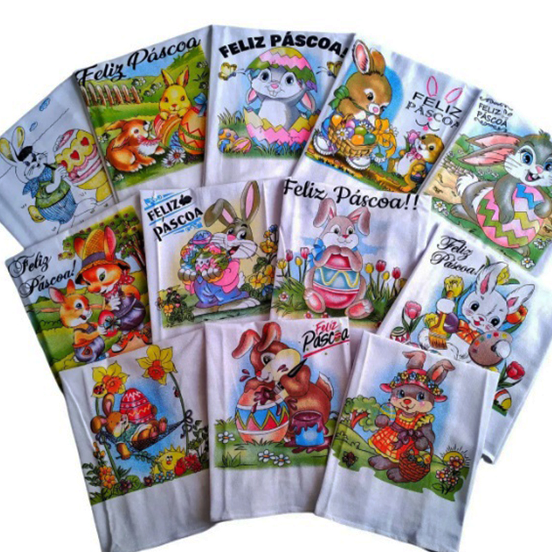 Pano De Prato Lomaer Sacaria Estampado Pascoa c/ Glitter 0,45 x 0,71cm 6Und Branco