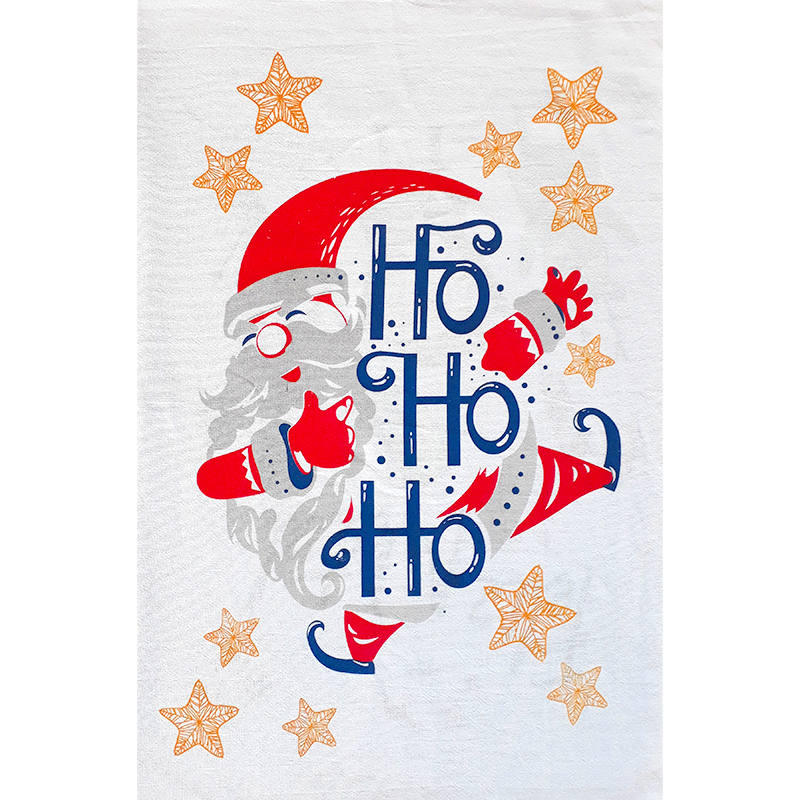 Pano De Prato Lomaer Sacaria Natal 50cmx70cm Estampado Ho Ho Ho Branco