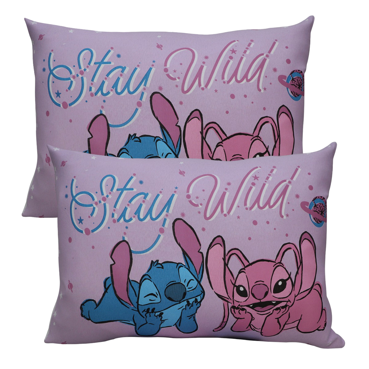 Par de Fronha KazzaVip Malha 100% Algodão Disney Estampa Localizada (2)Stitch e Angel 48cmx68cm Branco