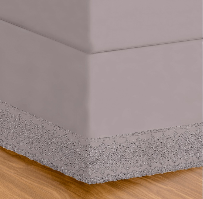 Saia Cama Box Buettner Queen Percal c/ Renda Bege