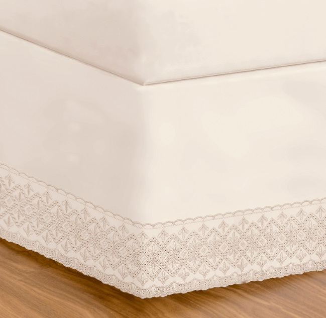 Saia Cama Box Buettner Solteiro Percal c/ Renda Perola