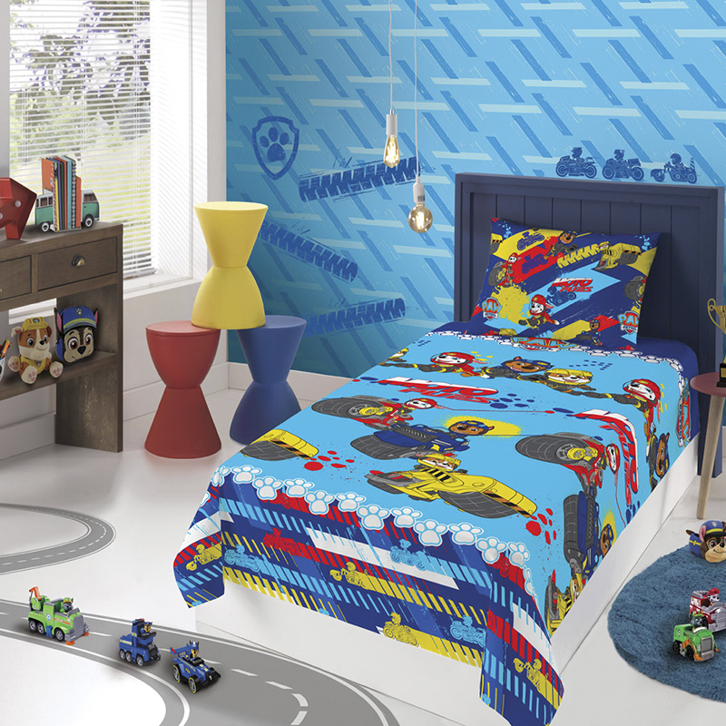 Sobre Lençol e Fronha Lepper Microfibra Estampado Patrulha Canina 02 Pçs Azul