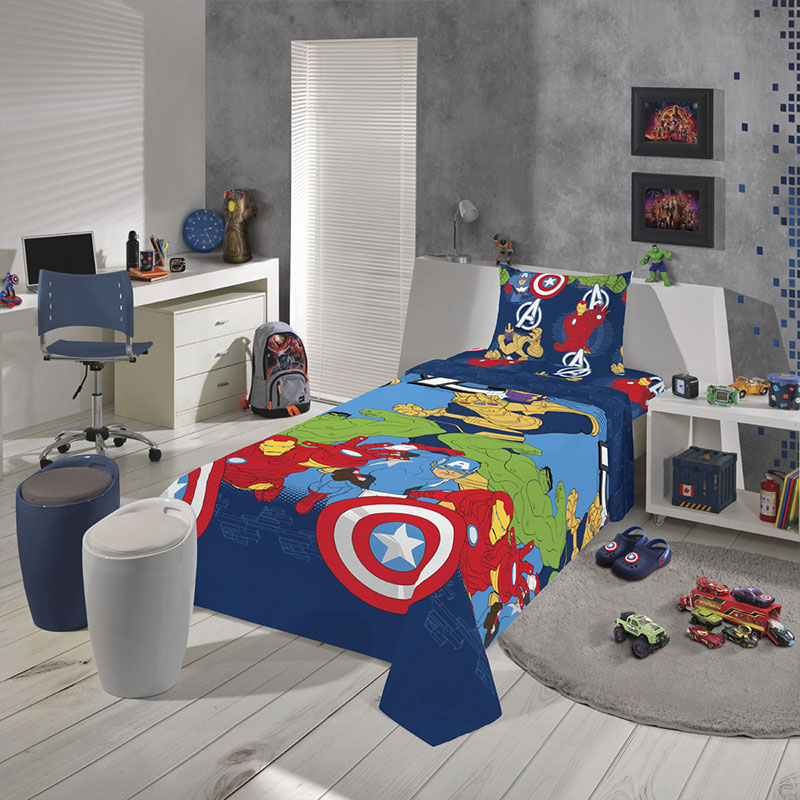 Sobre Lençol e Fronha Microfibra Solteiro Estampado Avengers 02 peças Azul