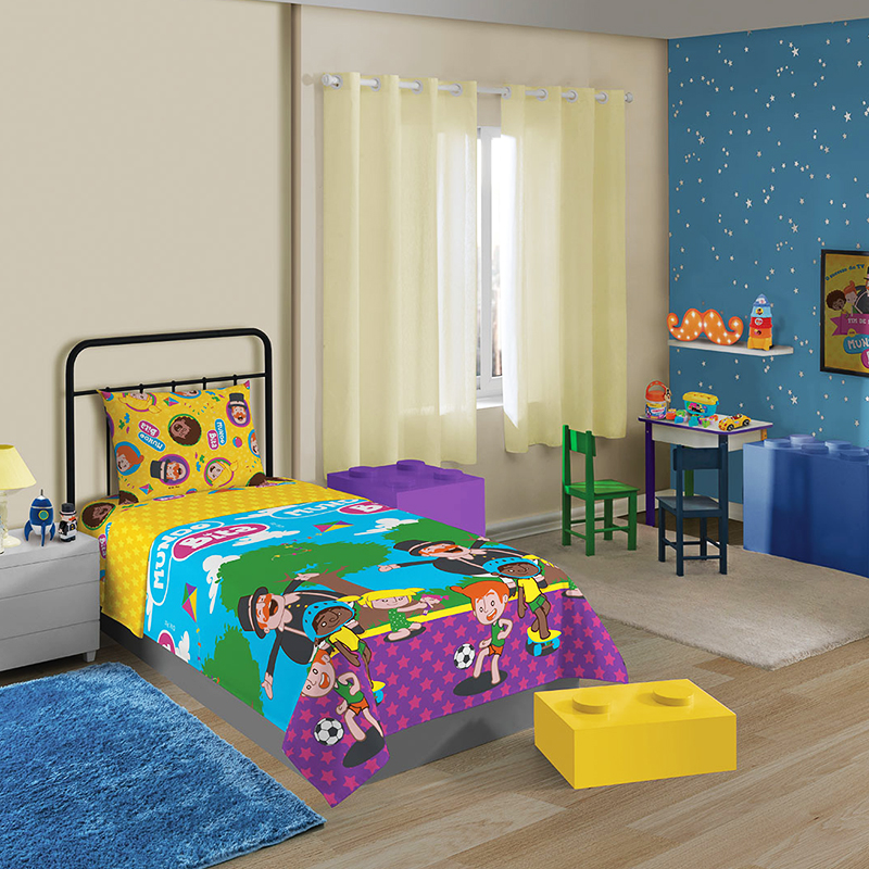Sobre Lençol e Fronha Microfibra Solteiro Estampado Mundo Bita 02 peças Azul
