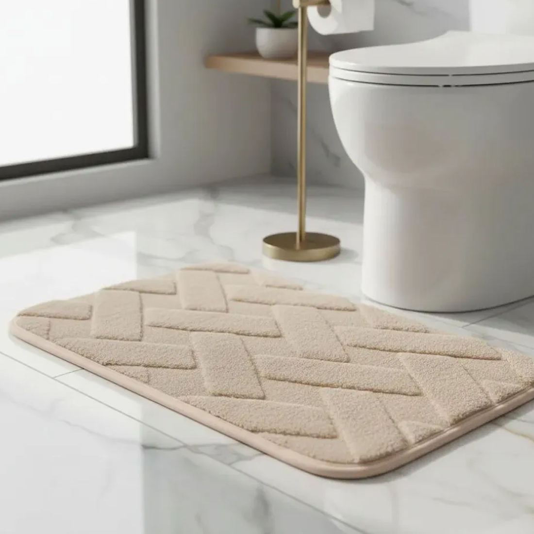 Tapete Conforto Kazzavip Felpa 100% Poliéster Antiderrapante Tijolinho Macio e Alto Relevo 38x58cm Bege