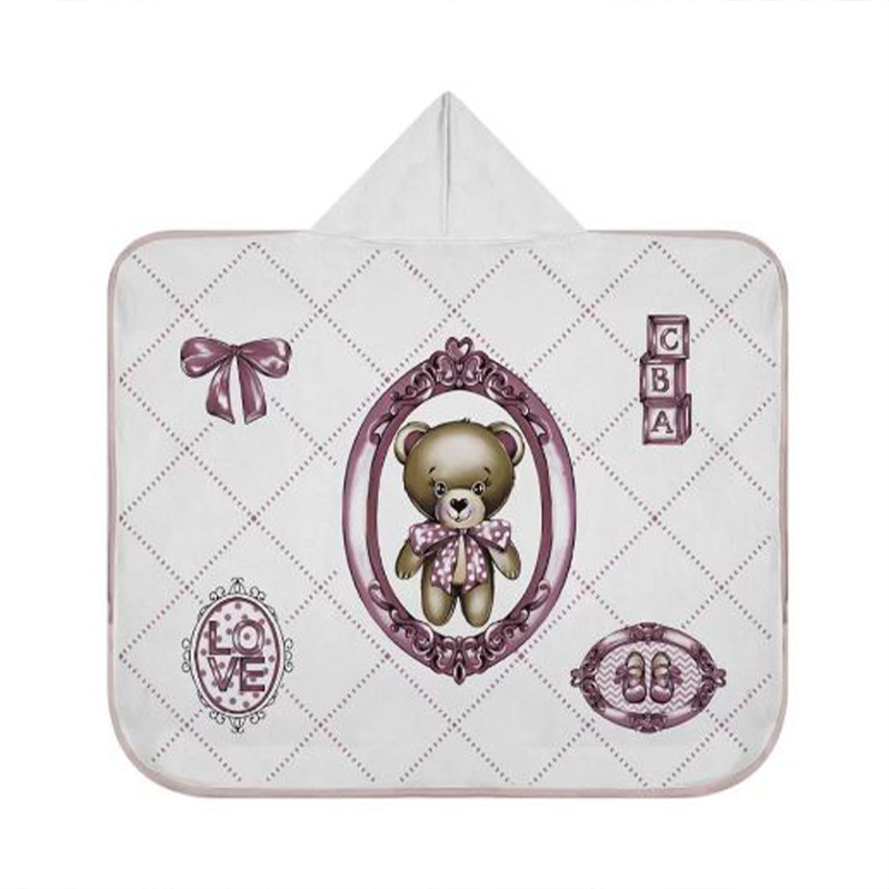 Toalha Baby Tecebem com Capuz Estampada com Fralda Cristina Rosa
