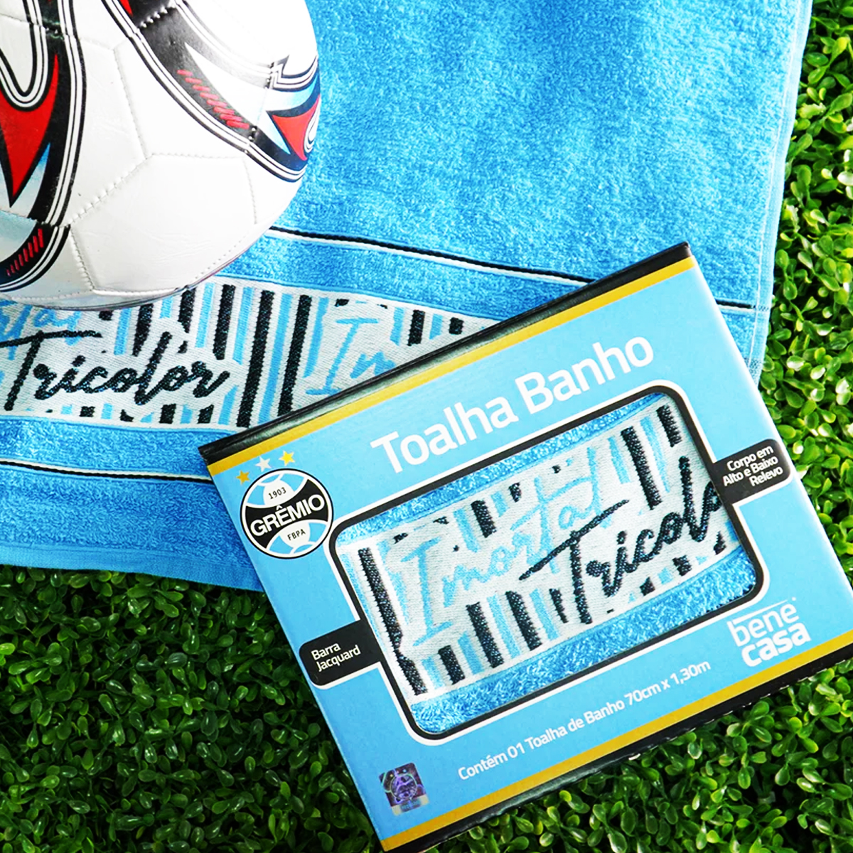 Toalha de Banho KazzaVip Felpuda 90%Algodão Grêmio Caixa de Presente Times 70cmx130m Azul