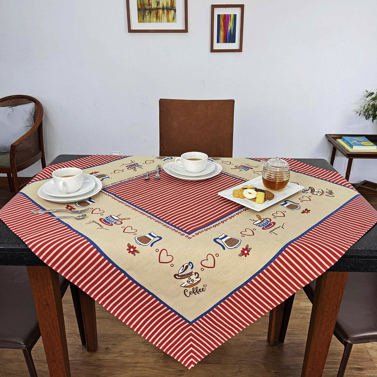 Toalha De Chá Centro Mesa KazzaVip 90% Algodão Estampado Coffee Super Pratica Quadrado 100mx100m Vermelho