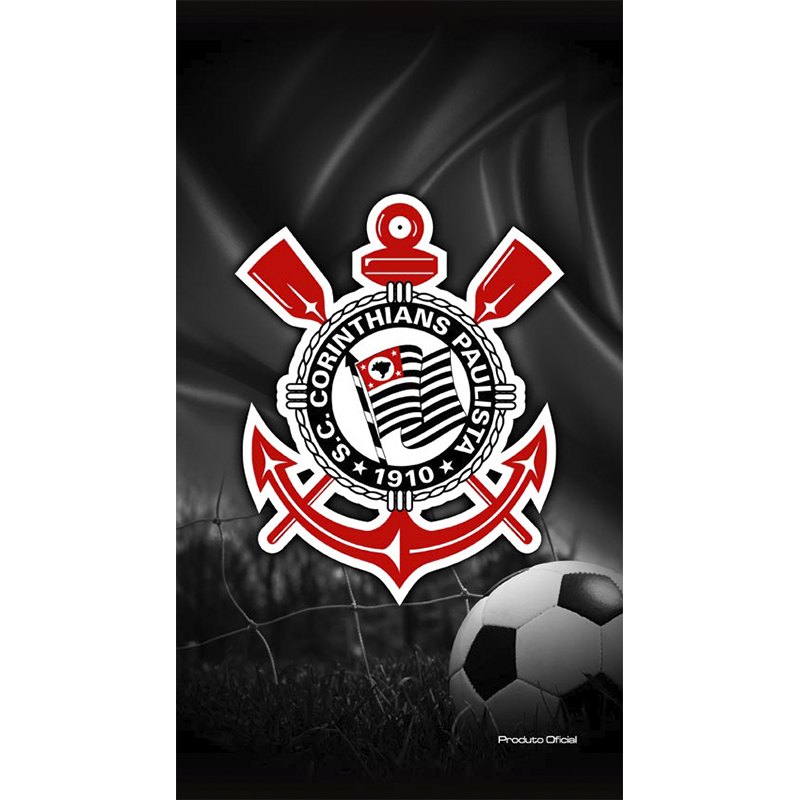 Toalha de Praia Buettner Felpa Estampado Reativo Brasão Corinthians 70cm x 130m Preto