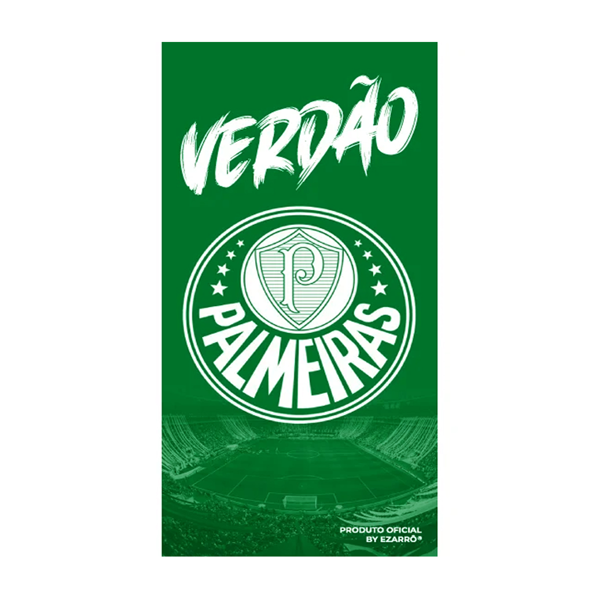 Toalha de Praia e Piscina KazzaVip Felpa 60% Algodão e 40% Poliéster Estampada Oficial Licenciada Palmeiras 70cmx140m Verde