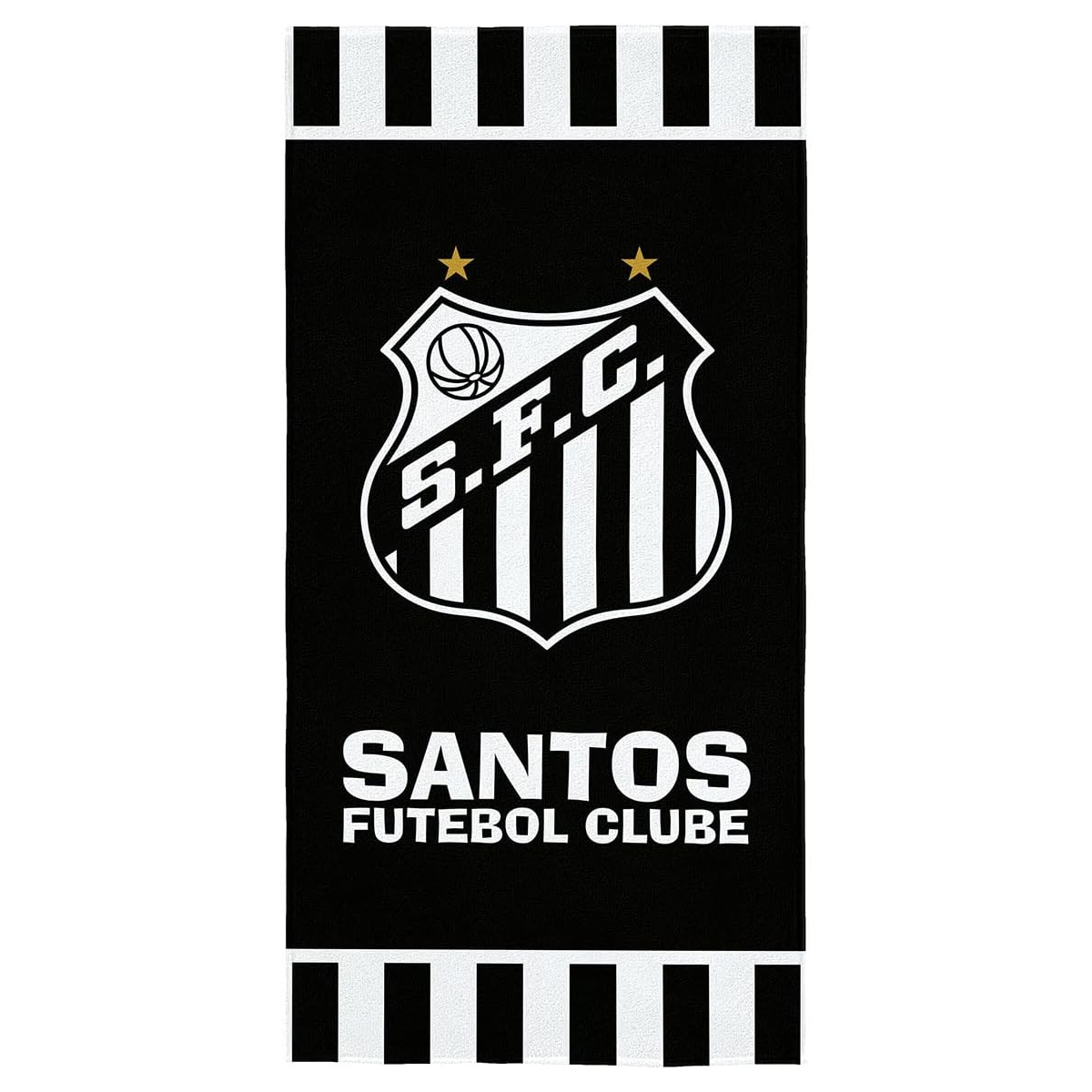 Toalha de Praia KazzaVip Felpa 55% Algodão e 45% Poliéster Estampada Anti Areia Santos Peixe Oficial 70cm x 140m Preto