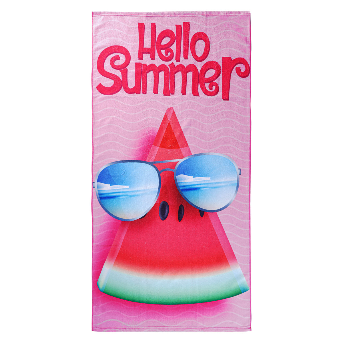 Toalha de Praia KazzaVip Microfibra 100% Poliéster Estampada Anti Areia Hello Summer 70cm x 140m Rosa